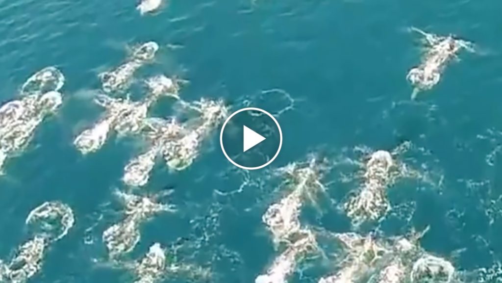 A drone caught hundreds of mermaids swimming across the ocean. Look closely!