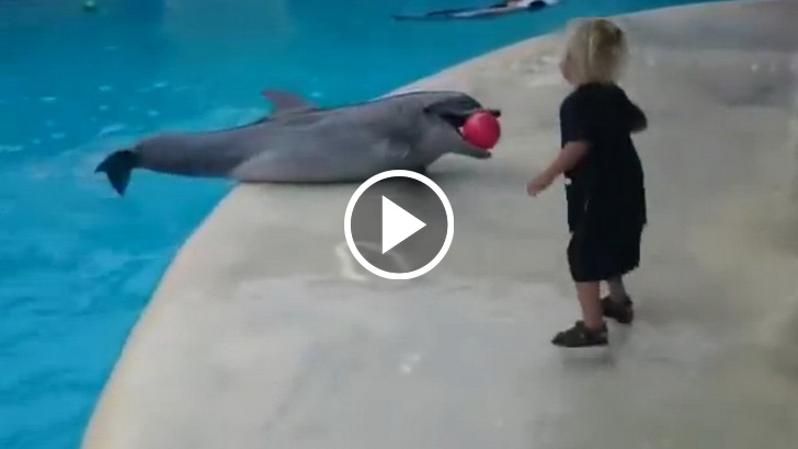 Adorable, Dolphin And A Boy Playing With A Ball!