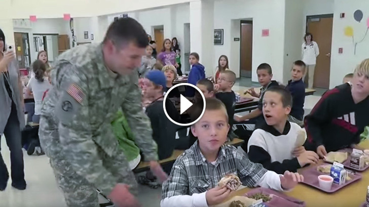 Army Dad Sneaks up Behind and Surprise his Son During Lunch