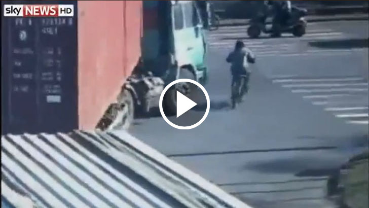 Chinese Cyclist was very lucky after being run over by a Truck! Amazing!