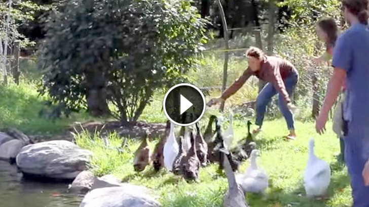 Woodstock Farm Animal Sanctuary rescued a group of ducks, and they realized that the birds had never been in water before. To watch the video > damnbored.tv