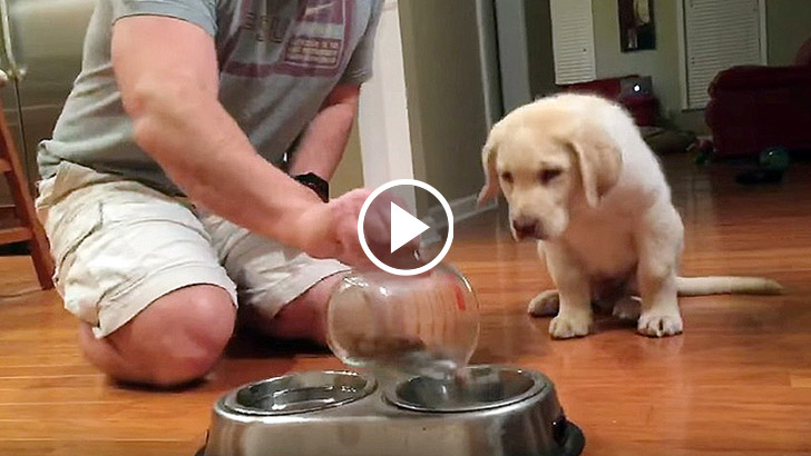 Dad Pours Food Into The Bawl, But Puppy Doesn’t Eat Right Away. What This Cutie Does Next Makes My Heart Melt So Much!
