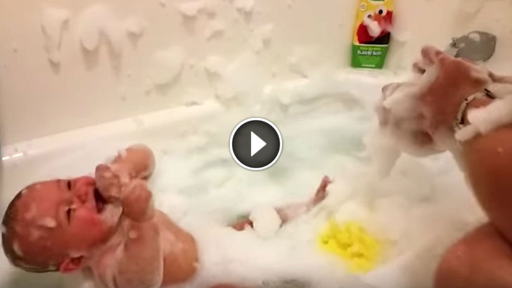 Dad Put Baby In Bubble Bath. But The Baby Can’t Hold Back His Laughter When Dad Does THIS!