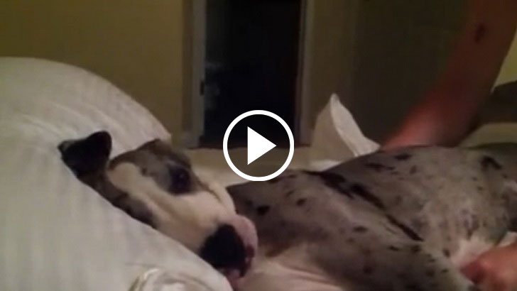 Daddy Tries To Wake Great Dane Puppy, His Reaction Is Hilarious! What A Grump!