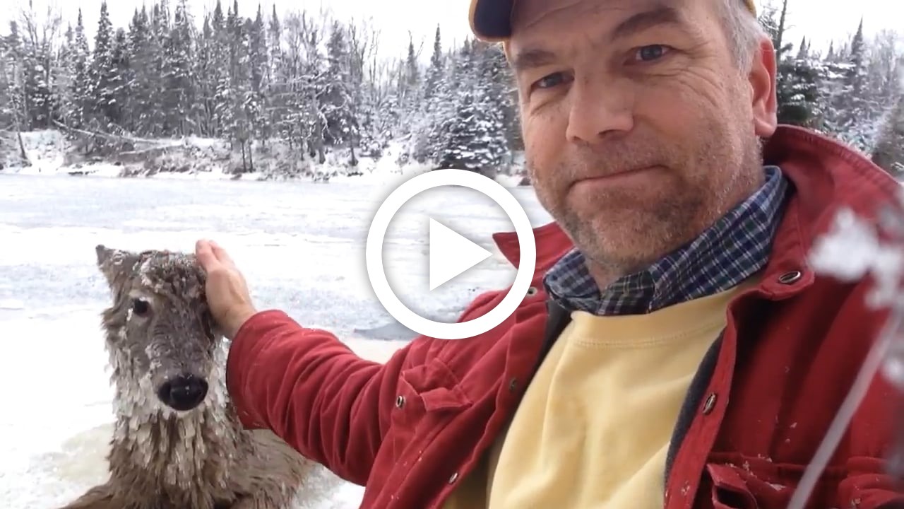 Deaf Man Risks Life to Save Wild Deer from Icy River, Petting it Right On Camera