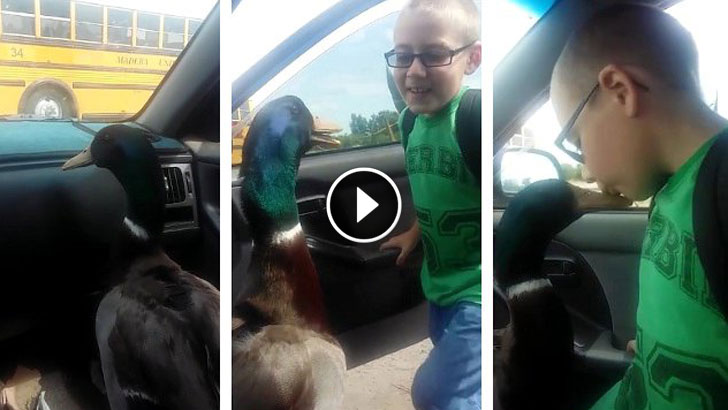 Duck Waits At The Bus Stop Every Day For This Boy. When He Arrives? Priceless!