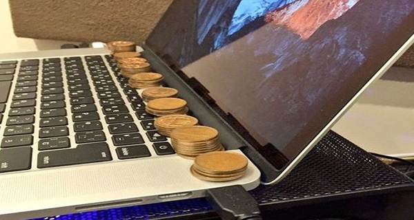 HE STACKS COINS ON HIS LAPTOP AND LEAVES THEM FOR A FEW HOURS. HOW COULD WE NOT THINK OF THIS BEFORE?!