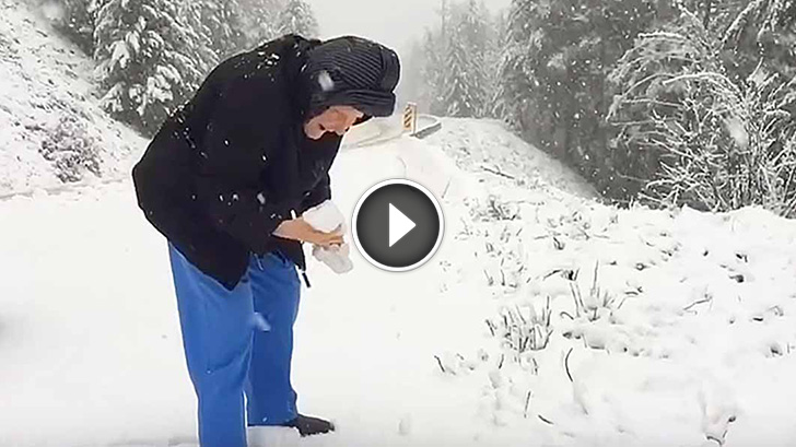 Here’s a great capture of a 101-year-old mom who was traveling with her son when all of a sudden she gets out of the car, onto the snow and bends down to pack a snowball. To watch the video > damnbored.tv