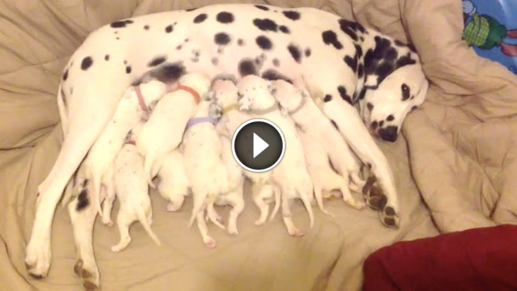 It’s Feeding Time For Her 11 Puppies, But Watch The One With The Purple Collar. Oh, My…