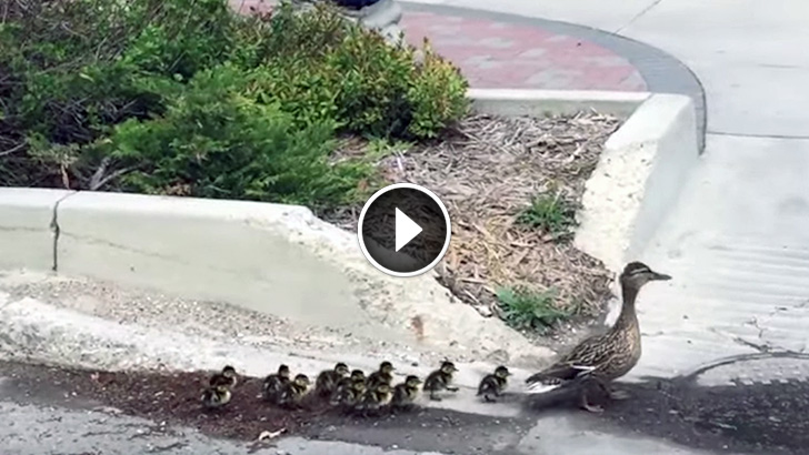 Mama Duck Leads 12 Babies Down The Street. Wait to See Who is Folowing Them…