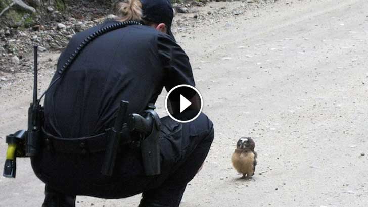 Officer Spots An Owl In The Middle Of Road. What Follows Is The Cutest Standoff Ever!