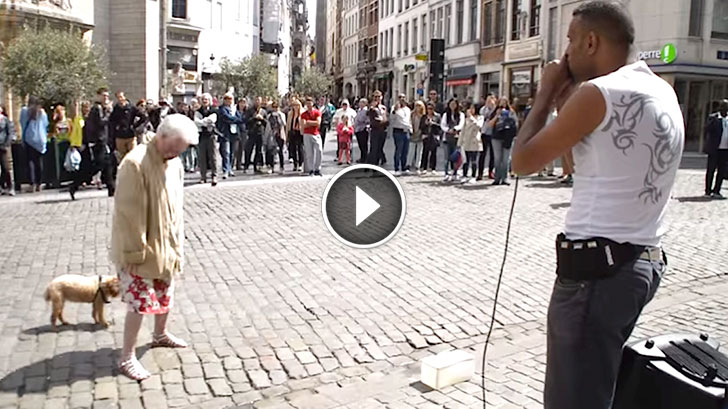 Old Lady Stops in Front of a Street Performer, But When She Looks Up? Everyone Is Stunned!