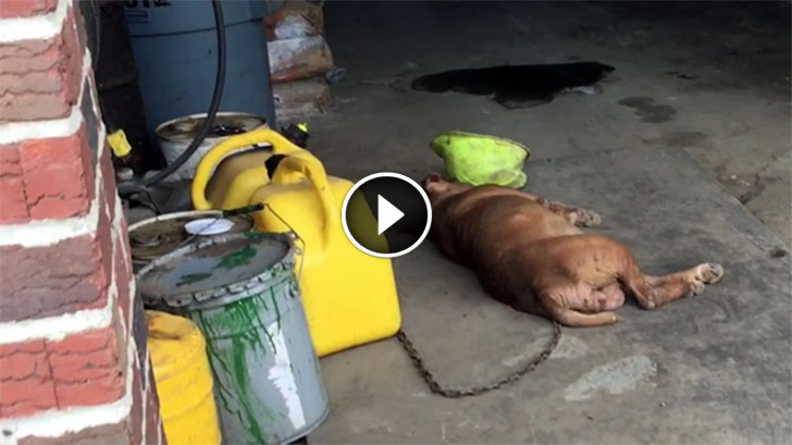 Imagine being chained to a wall in a musty garage with no protection from the elements. To watch the video > damnbored.tv