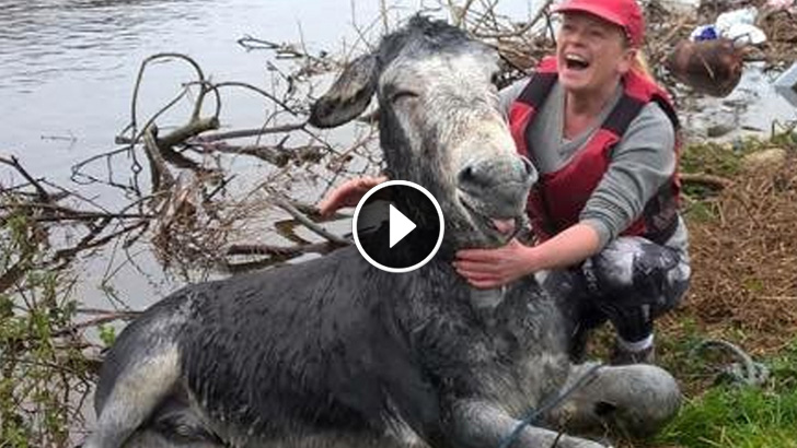 Poor Donkey Nearly Died in Flood. He can’t Help but Grin after Being Rescued!