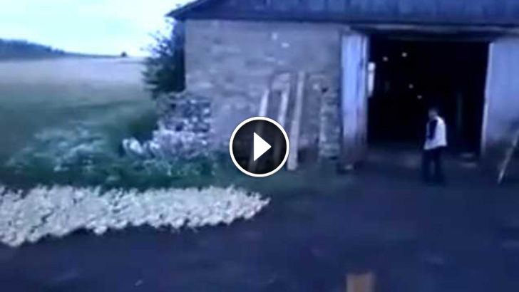 Russian Guy Commands Ducks To March Into The Barn. Ducks Oblige!