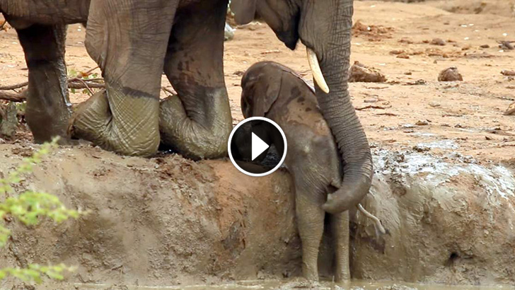 When an elephant calf got stuck in a waterhole, his mom was right there trying to help him out. To watch the video > damnbored.tv