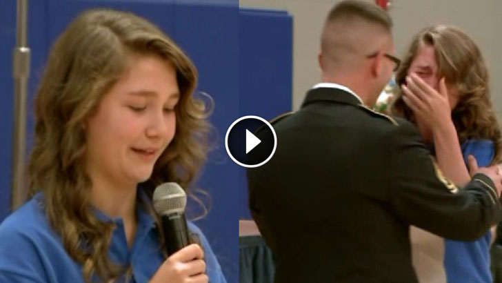 Schoolgirl Was Asked To Introduce Soldier, But Has No Clue It’s Her Dad She Hasn’t Seen In 2 Years