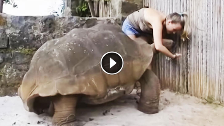 She Tries To Feed A Giant Tortoise. How He Thanks Her Is So Great