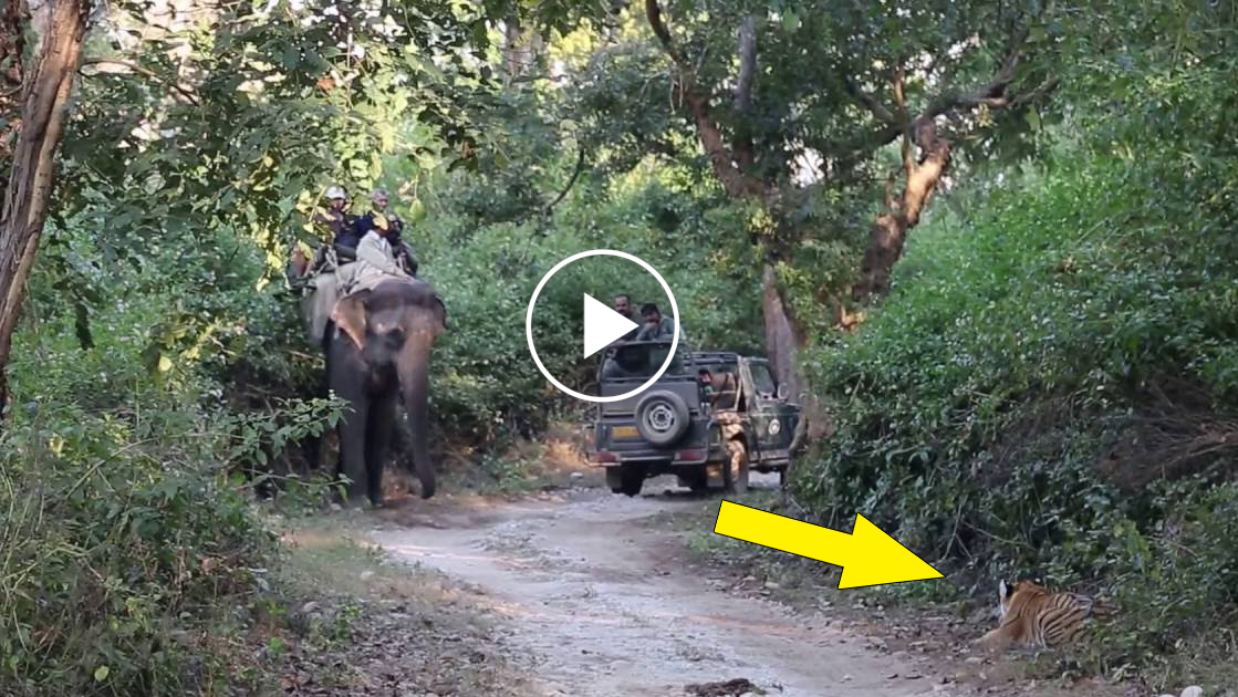 Tiger attacks elephant in Jim Corbett on 17th Nov’16….before chasing a gypsy too! This was witnessed on the Sambar road … To watch the video > hangovernews.com