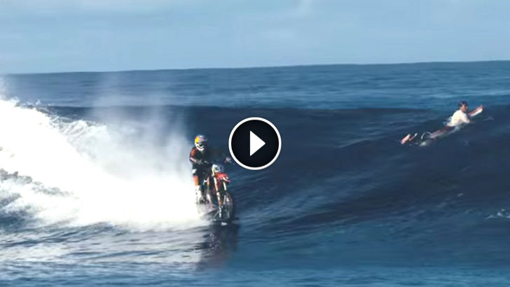 Surfers Watch In Disbelief As He Rides The Waves On His Dirt Bike. This Is CRAZY!!