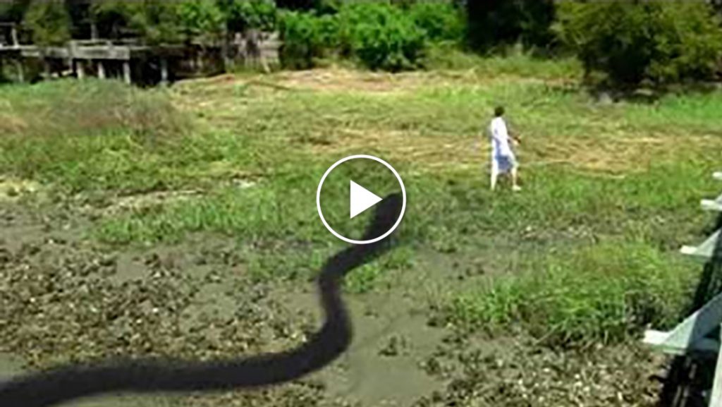 The reaction of a grown man when he is attacked by a giant snake! OMG!