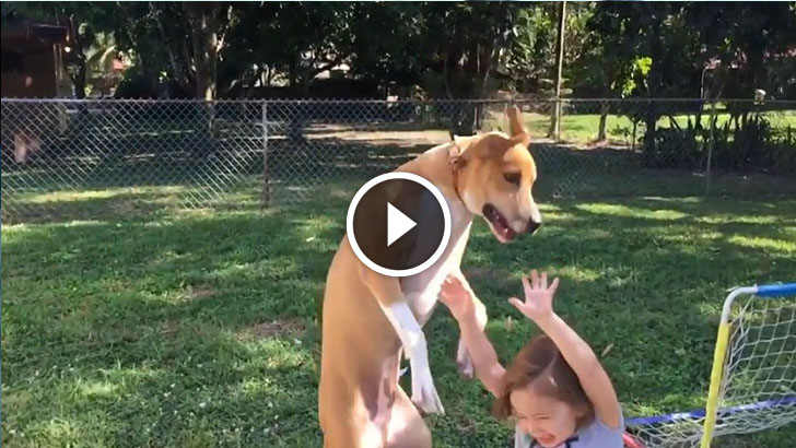 This Dog is jumping to catch a bubble, but when he realize that he is about to land on a child… Have to see!