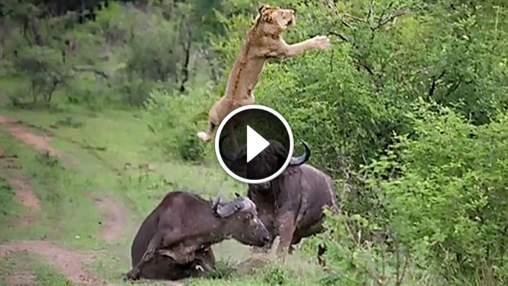 This Lion Was About To Have a Buffalo Dinner. Then His BFF Showed Up And Did The Unimaginable