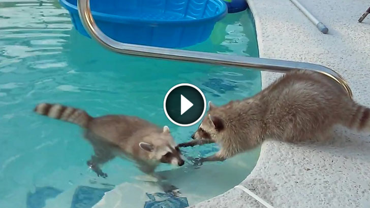 Young Raccoon just Wants to Swim, but his Brother is so Nervous. His Reaction is Absolutely Histerical!